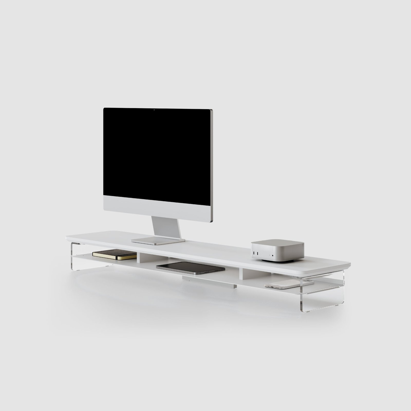 This compact monitor riser shelf is designed to raise screens to a comfortable viewing height while fitting easily on smaller desks. Its simple structure keeps the workspace organized and leaves usable space underneath for daily items.