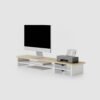 This low profile monitor riser stand is designed to slightly elevate screens for improved viewing comfort. Its compact height keeps the desk layout clean while allowing space below for a keyboard or small items.