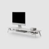 This monitor riser stand is designed to elevate desktop monitors to a more comfortable eye level during daily use. The low profile design gives the riser a distinct look while maintaining a stable and balanced structure. The flat top surface supports standard monitors without occupying excessive desk space. Open space beneath the riser allows a keyboard, laptop, or accessories to be stored when not in use. The overall form is practical and suited for home offices, study desks, and professional workstations where clean organization is preferred.
